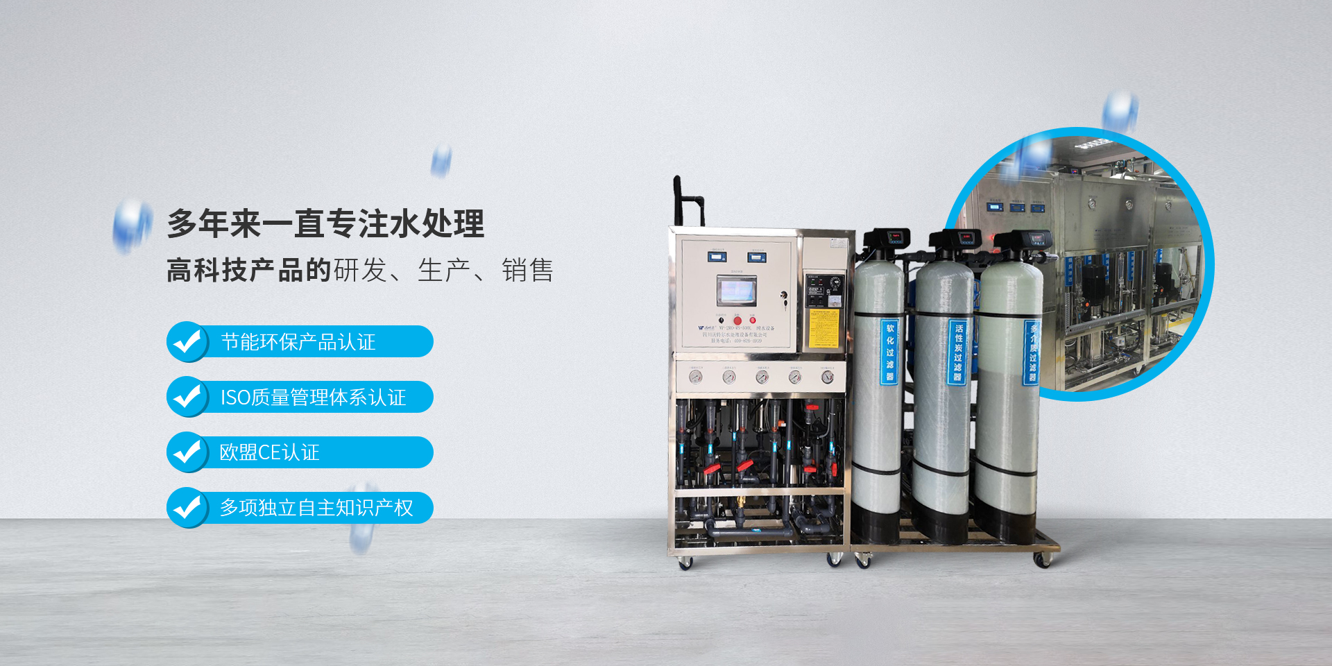 四川沃特爾水處理設(shè)備有限公司位于成都市溫江區(qū)成都海峽兩岸科技產(chǎn)業(yè)開(kāi)發(fā)園雙堰路1919號(hào)20號(hào)樓,公司成立于2005年6月16日,擁有3000多平米的現(xiàn)代化廠房,是一家集純水和超純水設(shè)備的研發(fā)設(shè)計(jì)、生產(chǎn)銷(xiāo)售、安裝服務(wù)、技術(shù)咨詢?yōu)橐惑w的綜合型企業(yè)。 公司主要生產(chǎn)和經(jīng)營(yíng)實(shí)驗(yàn)室超純水機(jī)系列、工業(yè)水處理設(shè)備等。