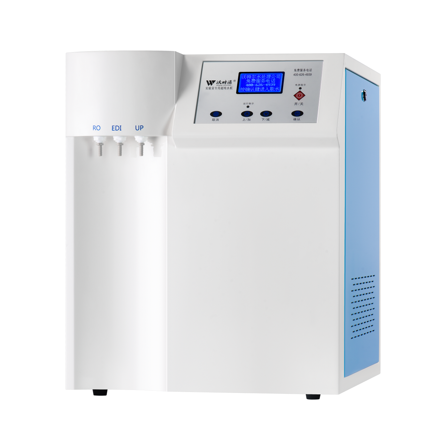 采用雙波長(zhǎng)紫外消解系統(tǒng),除熱源超濾膜組件,采用進(jìn)口離子交換樹(shù)脂過(guò)濾,使超純水能滿足各種實(shí)驗(yàn)要求。